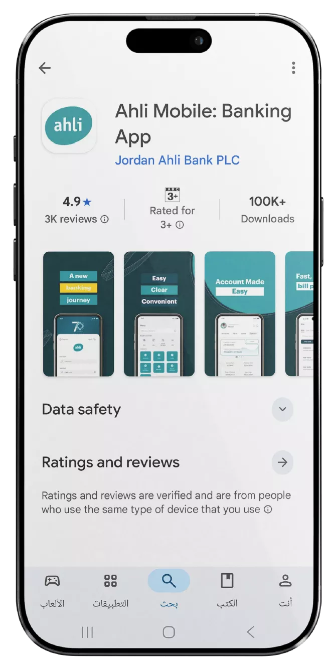 Search for “ahli Mobile” in the app store.
